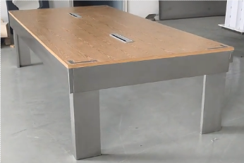 This custom office desk is designed for modern workplaces and commercial environments. Featuring a sturdy stainless steel frame and high-quality marine board surface, it offers excellent durability, moisture resistance, and long-term stability.